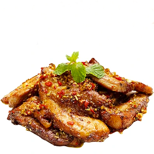 Thịt ba rọi chiên sả ớt bên ngoài giòn, bên trong mềm ngọt vô cùng thơm ngon, đậm vị. Màu vàng nâu của thịt và mùi thơm của tỏi ớt chắc chắn sẽ kích thích vị giác của mọi người, giúp bữa cơm thêm ngon và hấp dẫn.