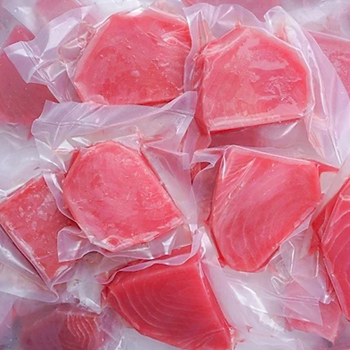 Cá ngừ cắt lát bỏ da, bỏ xương , cắt từng lát . Đóng gói hút chân không trọng lượng từng túi là 0.5kg .